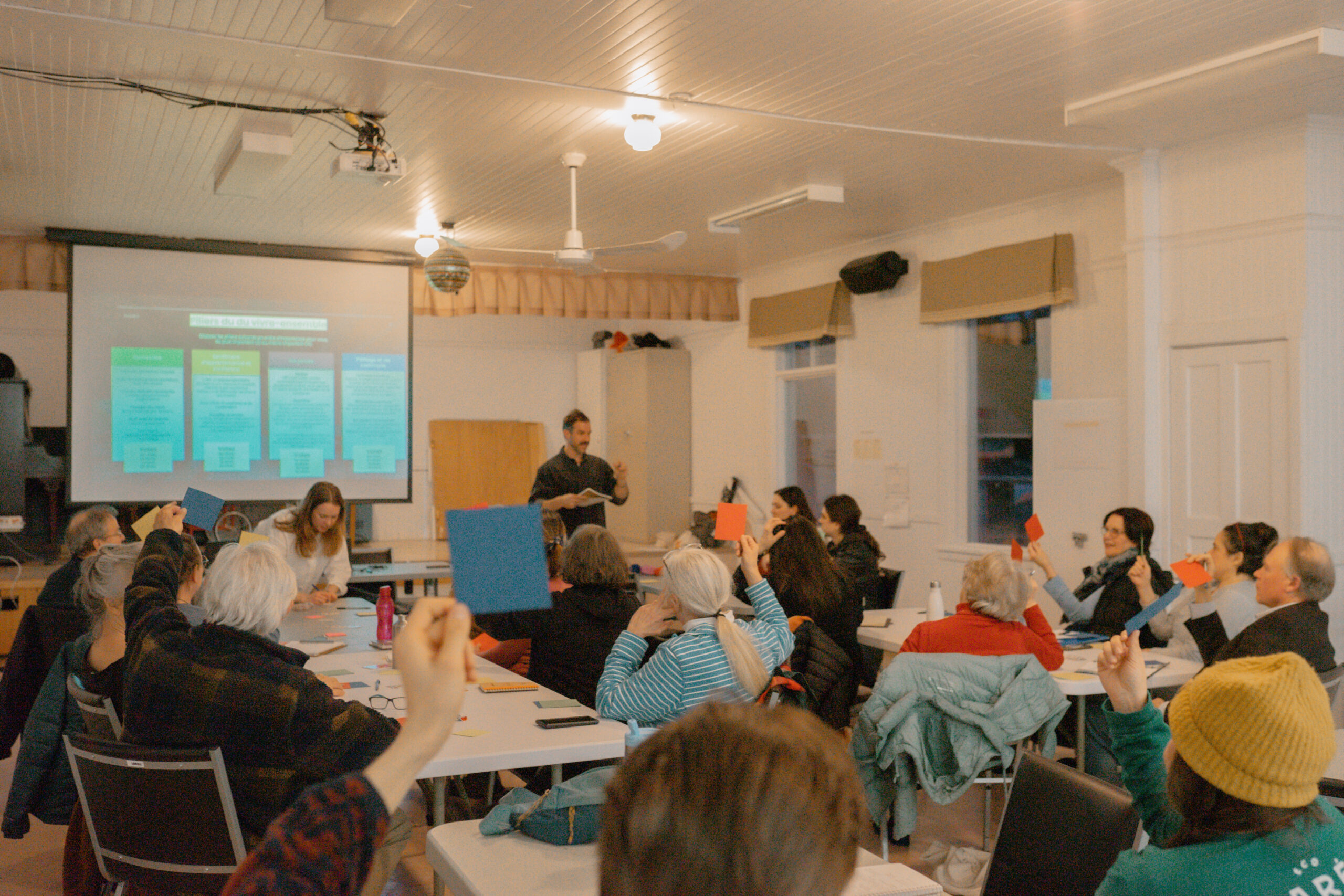 Comme particularité, ce premier projet a été mené dans un partenariat public-collectif (PPC) avec la Ville de Métis-sur-Mer, ce qui signifie que tout le processus de développement du projet est réalisé en collaboration avec la municipalité et ses élu·e·s et pour la population locale.